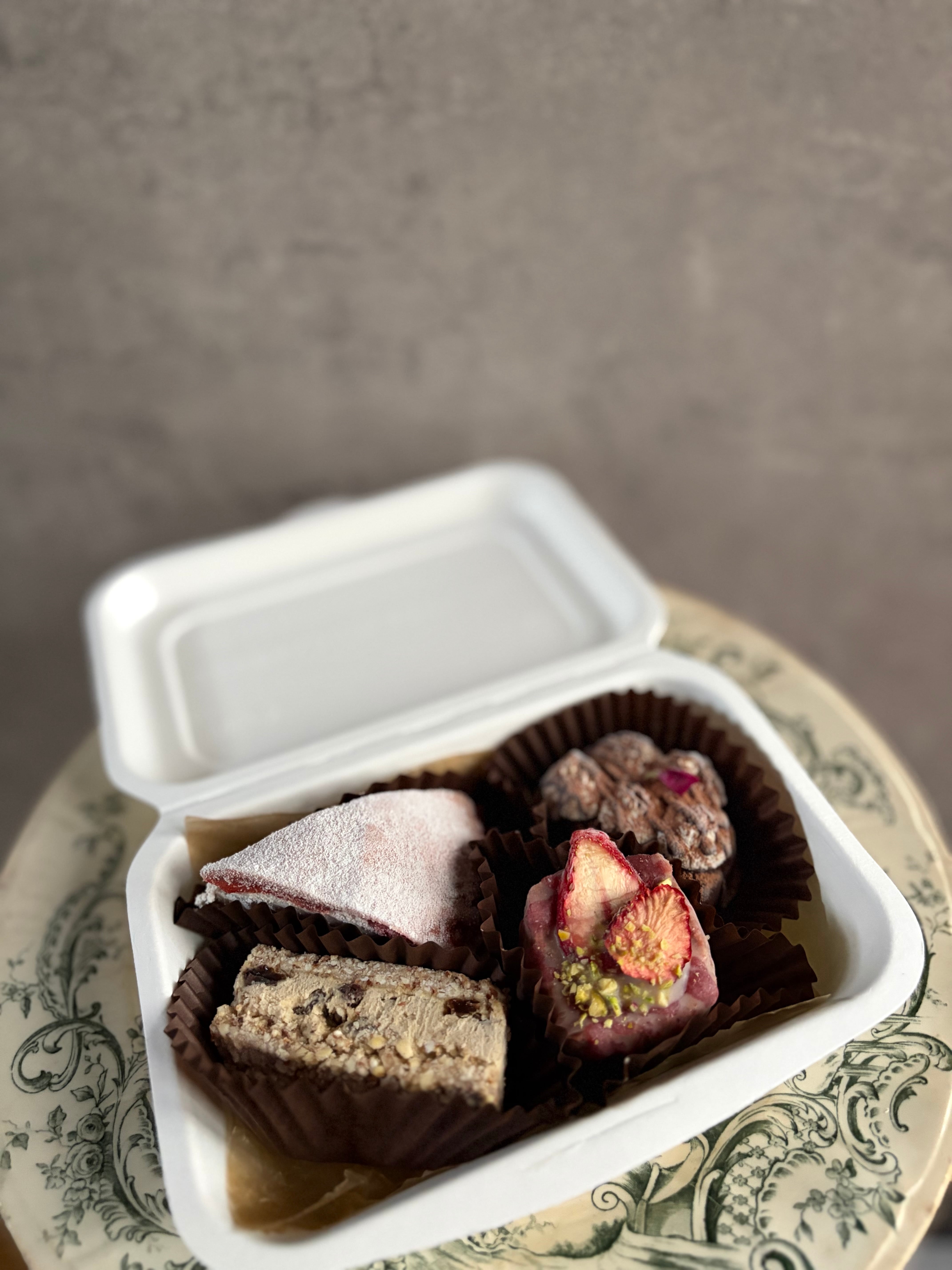 (いちごのミルクレープ、ラムレーズンサンド、桜のスコーン風、もちもちカプチーノショコラ)